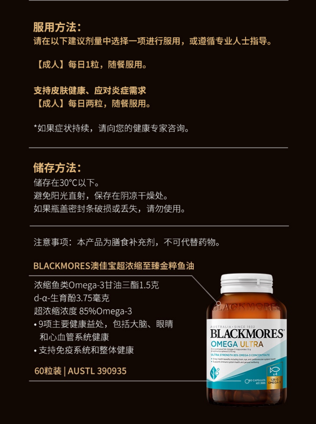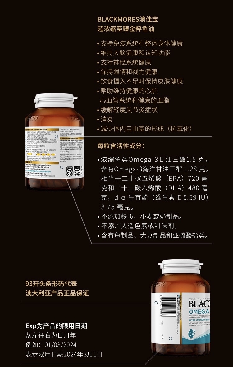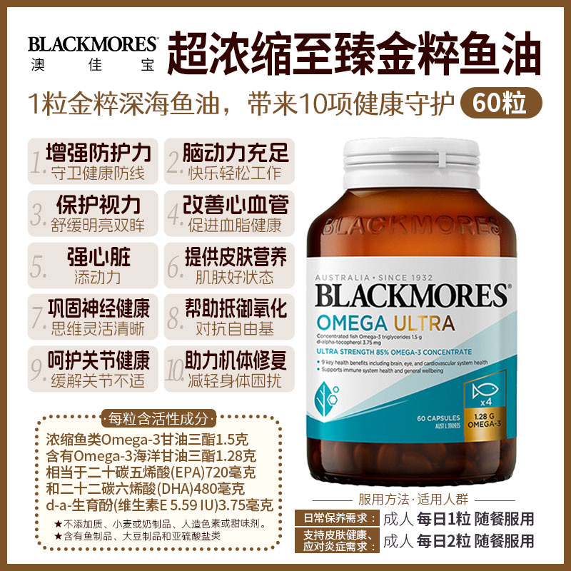 Blackmores Omega Ultra fish oil 超濃縮至臻金粹魚油 60粒 數量