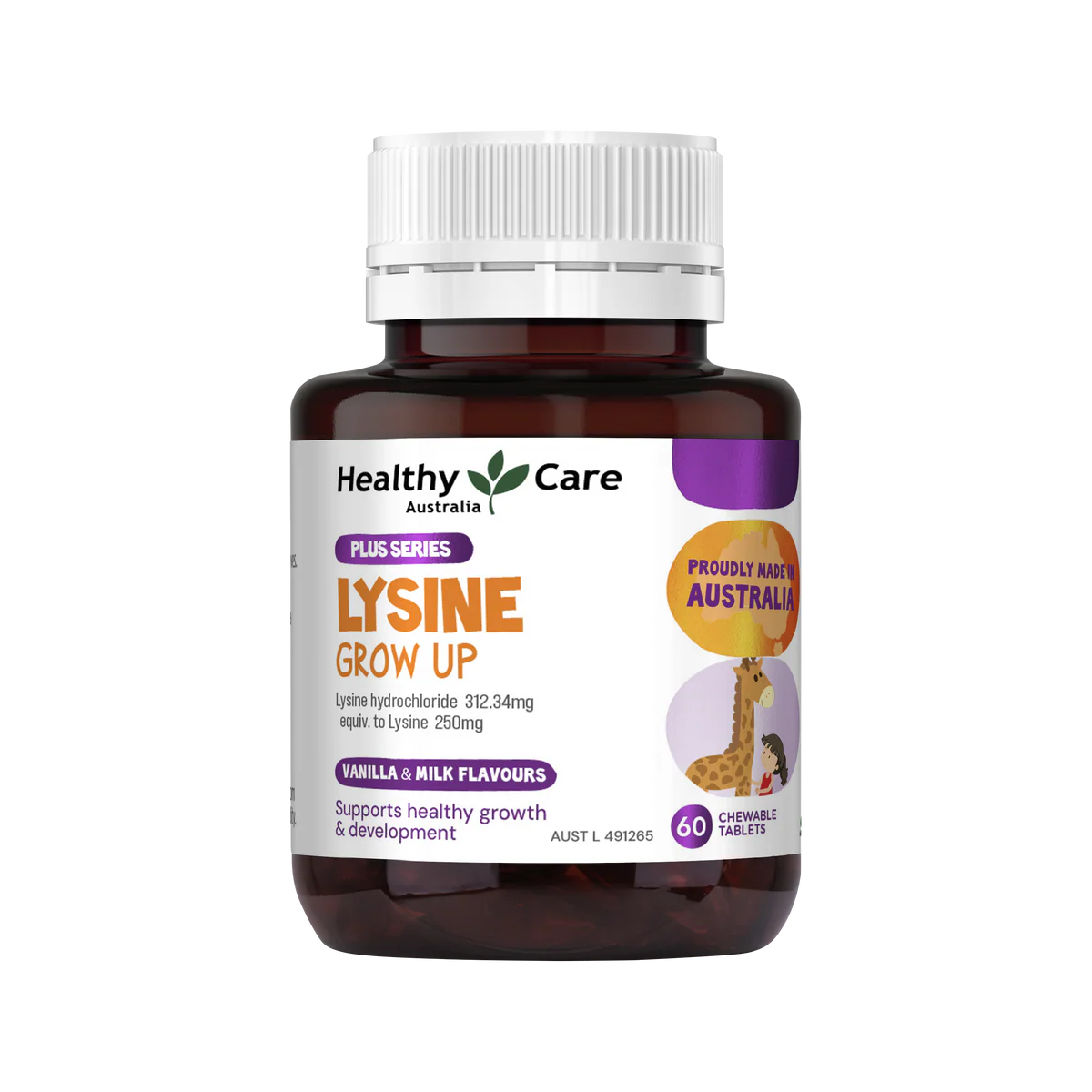 Healthy Care Plus Lysine Chewable 兒童助長素60片 香草奶味